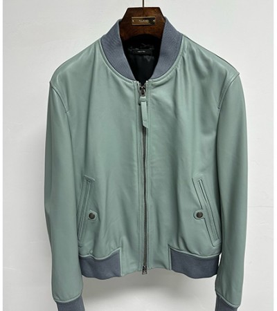 • [홍콩명품.TOM FORD] 톰포드 25SS 로고 레더 가죽 봄버 자켓 (그린), BM22084, TOM, 레플리카의류,미러급사이트